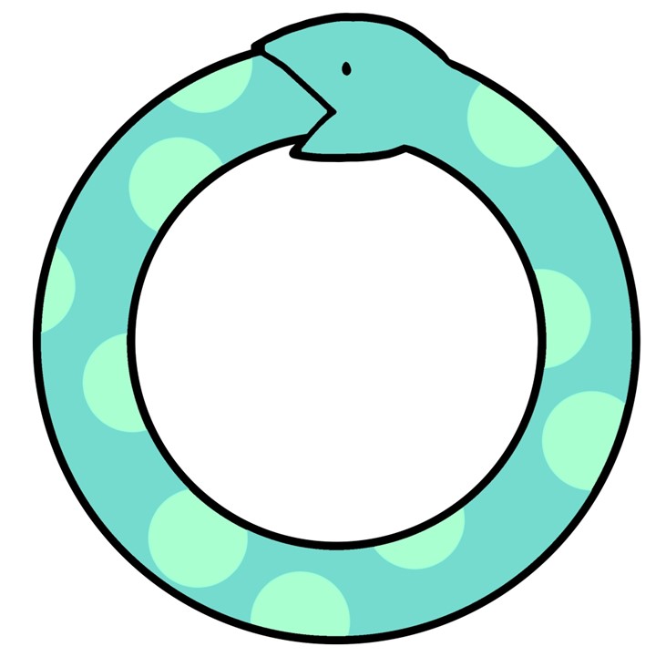 蛇というと私の場合、よく脳裏に浮かぶ図があります。自分の尾を噛んで円を作っている蛇で「ウロボロスの蛇」と呼ばれています。この図は、古代からいろいろな文化で使われていて、主に次のような意味を持っています。